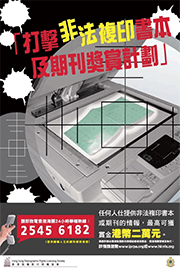 Payment of HK$15,000: information leading to the arrest of any person and seizure of more than 4 copying machines and at least 200 illegal photocopies of books.